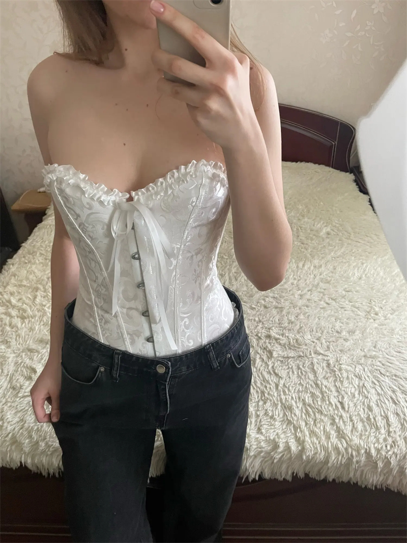 Sapubonva Women Shirts Top Sexy Blouse Off Shoulder Party Puff Ruffle Crop Top Summer Tube Renaissan